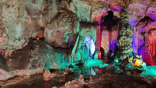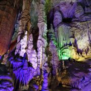 石花洞风景区的洞内常年恒温13度,夏季时是京郊周末避暑出游的好地方。石花洞内的石花形式多样,数量繁多,洞内的开放部分安装了彩色灯光,和各种石笋石花一起构成了奇幻瑰丽的景观,观赏和摄影都十分合适。