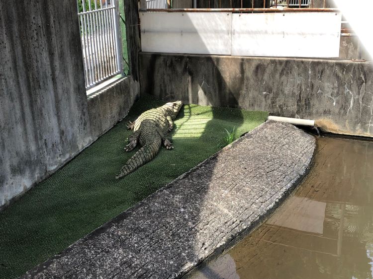 由鬼山的地名而来的。特点就是利用温泉的热度来饲养鳄鱼,现已有300余头,大大小小的都趴着不动。