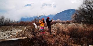 从波密到如纳村大约32公里,放眼望去,河岸两边的村庄躲藏在繁密如花海的桃花林中,非常美丽。