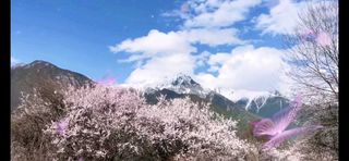 走进如纳村,仿佛来到世外桃源。村子里静悄悄,偶而几声藏犬吠叫,更显村庄的宁静。村庄景致优美,蓝天白云下的雪山升起层层的云雾,道路旁弯弯曲曲篱笆围着畦畦的青稞,在绿油油青稞衬映下,千姿百态的桃花绽放灿烂。 这里的桃花不同于其他地方,田间垄上、纵横阡陌、无一地不是野生桃花的世界。再现古诗中“雨中草色绿堪染,水上桃花红欲然”的景象。