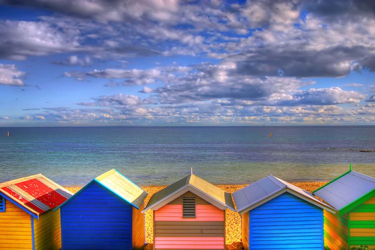 布赖顿滩是墨尔本著名的海边景点,位于墨尔本市中心东南部11公里处,从市中心搭乘火车到达沙滩大概需要30分钟,沙滩上有五颜六色的小屋,游人如织,冲浪、潜水、日光浴,各种活动非常精彩。