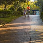 圭塘河社区公园 位于湖南省长沙市雨花区圭塘河,公园用地面积为1349亩,核心区为运动休闲区,分为场馆区、儿童区、观岛赏景平台、公园中心服务区。公园景色优美,空气清闲,是市民运动休闲的好去处。