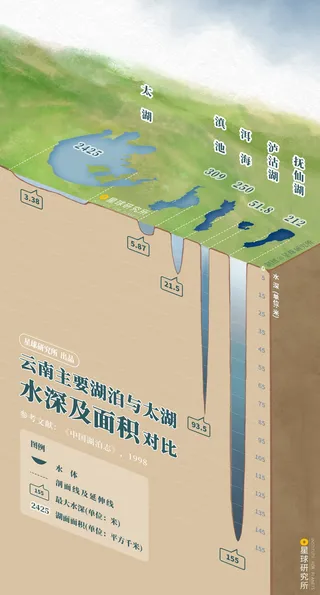 抚仙湖,地处澄江县、江川县、华宁县三县间,距离昆明60多公里。湖面积达212平方公里,仅次于滇池和洱海,是云南省第三大湖。其深处可达155米,是云南省较深的深水湖泊。除东北长白山火山口湖──天池外,抚仙湖是中国已知的第二深水湖泊。