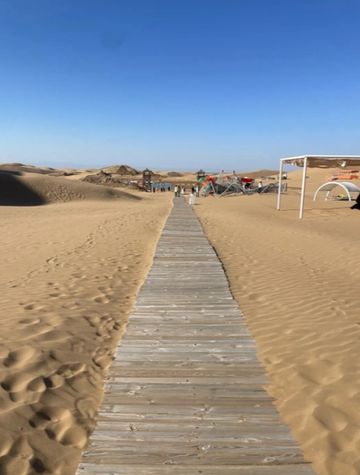 "黄沙柔软,沙丘起伏似波浪"