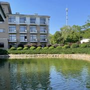 距大连市区55公里的地方,有一处青山翠拥,碧水环绕,鲜花盛开,鸟语声声的人间仙境,就是大连铭湖国际温泉滑雪度假区。这里的空气清新可人,弥散着原生的自然气息,潺潺的泉水里,鱼儿撒欢畅游,绿草、鲜花、垂柳、翠柏环绕着一湖碧水构成了一副动静相宜、浑然一体、风格独特的生动画卷,窗棂组成了画框,尽情诠释着铭湖的无限山水盛景。