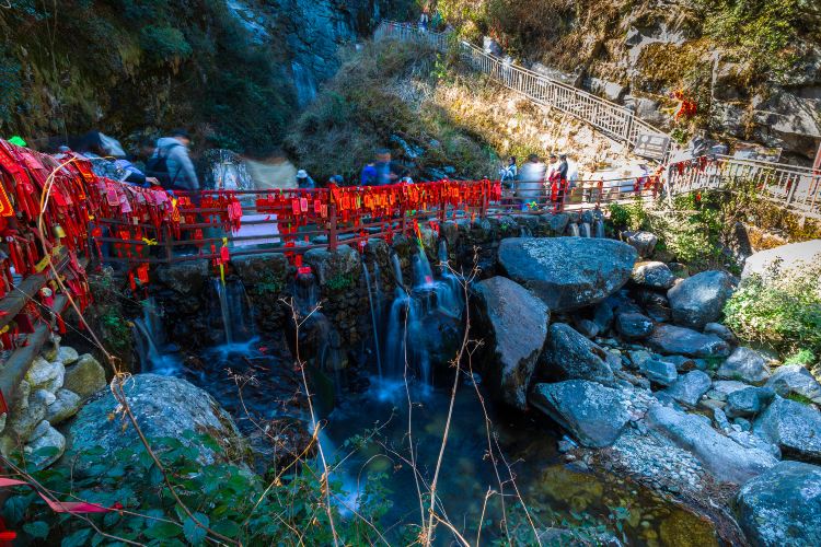 清碧溪是苍山国家公园的一条溪流。通过感通索道车到山顶,就可以看到清碧溪的源头瀑布。瀑布下有三个潭,潭水清澈见底。如果不乘坐缆车上山,这个可以看到整条溪水。坐缆车则只能看到源头。山顶人比较多,到路比较湿滑,需要注意安全。