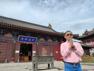 云冈石窟-灵岩寺坐落于云冈石窟景区的湖心岛中央,进入景区大门后,走过昙曜广场,穿越古朴典雅的七孔桥,寺院山门就出现在面前。云冈石窟-灵岩寺的三座大殿的主佛像,全部采用巨大的香樟木作材料,由来自福建省莆田的木雕世家传人黄文寿大师担纲雕刻。其中,山门内的主佛为3尊,中间为交脚弥勒菩萨,两侧为护法;千佛殿的主佛为7尊,中间为释迦牟尼佛,左右还有燃灯佛、多宝佛、观世音、大势至菩萨等;大雄宝殿主像为过去、现在、未来三世佛。寺院周围的四座角楼、六座配楼,加上“一斗三升人字拱”,更是引人入胜。