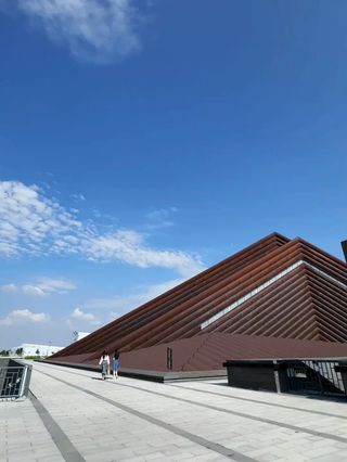 美术馆占地77亩,建筑面积32238.5平方米,地面建筑高度36米,拥有独特设计元素的金字塔式几何外形。