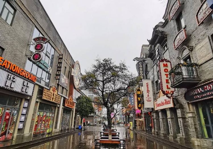 该风情街热闹非凡,街边张贴着具有年代感的海报、绘本,还有一个电影博物馆,里面展出的东西,多为不同年代的电影放映机,及胶片,复古气息浓郁。