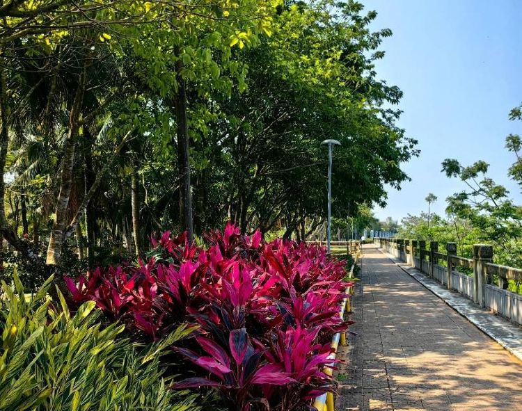定安沿江公园内有三大分区,分别为活力广场区、文化休闲区和健身活动区,是休闲娱乐的好去处。