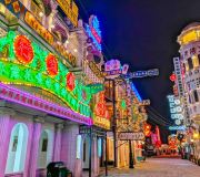横店影视城明清宫苑园区是横店影视城内较为经典的景区之一,这座集影视拍摄和旅游观光等功能于一体的特大景区是按照北京紫禁城1:1比例修建的,是目前横店较大的影视拍摄基地。在此共拍摄了《天下无双》、《满城尽带黄金甲》和《鹿鼎记》等百余部影视大片。后宫戏大热的今天,横店影视城明清宫苑园区更是吸引了众多剧组,《宫锁心玉》、《甄嬛传》、《金枝欲孽》、《宫锁珠帘》等热播剧均在此取景,周润发、巩俐、黄晓明、孙俪等明星都曾在此留下过身影。景区基本上每天都有剧组在这里取景,因此来这里游玩的同时,说不定还能碰到大明星。