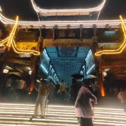 南桥是一座仿古廊桥,廊桥的天棚有彩画天花及卷棚仿古天棚,所有的木雕进行描金填彩。廊桥边上有一条热闹的美食街,能够吃到各种当地的美食。夜晚的廊桥特别美丽,吹江风,吃小吃,欣赏夜景,非常惬意。
