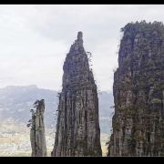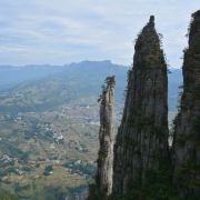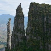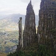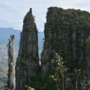 大地山川为喀斯特地貌中的象形山石,由一方形山体及两个修长的灰岩岩柱组成,三者皆经过早期地壳运动发生断裂和后期风化、剥蚀、溶蚀及重力崩塌产生剥离,终从主体山脉分离出来。整体造型酷似一个硕大的“川”字,故名。