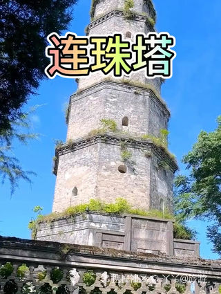 连珠塔,位于湖北省恩施市五峰山第一峰龙首峰,始建于清道光十二年,塔身高七层,透过竹林隐隐约约可看到塔顶,八个大大力士托起八个塔角,形神兼备,威风凛凛。