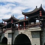 三河古镇位于合肥市区南部约40公里处,因有丰乐河、杭埠河、小南河三河流经而得名。古镇由三河上的古码头发展而成,距今已有2500多年历史,春秋时名鹊岸,明代始称三河镇,1858年太平天国陈玉成、李秀成在此大败清军,称“三河大捷”。古镇的老街上铺着青石板,被千百年来的人行车压打磨得光滑,两侧的徽派建筑别具一格,有不少是青砖直接砌成墙,马头墙上挑出的飞檐上翘得比宏村、西递马头墙上的夸张得多。游览指南一般从镇中心开始游览古镇,坐长途汽车到三河汽车客运站后,右手转弯步行10分钟,穿过为纪念“三河大捷”而建的大捷门牌坊,便来到镇中心的三拱石桥三县桥,因此处是合肥市的肥西县、庐江县,六安市的舒城县,三县交汇处而得名,桥下流淌着南北走向的小南河。三县桥的西北有国粹楼,高七层,登楼可俯看三河古镇全景,楼内陈列着轿子、牌匾、雕花床、石雕等精美的徽派特色文物。国粹楼附近的大夫第(三河民俗博物馆)里展出的文物同样精美,有官员私宅的厅堂布置,漂亮的木雕,1.5米长的大算盘等。三县桥的东北有仙姑楼(中和祥旧址),徽派民居式的寺庙,为当时的大商人所建。由仙姑楼沿着小南河东岸北行,是青石板铺就的古西街,长500米,曾是古镇历史较繁华的街道,多传统,比如先前仙姑楼旁边有还在营业的中和祥糕点店。而在这些传统中,较大的是刘同兴隆庄,内部依旧按商铺的模样布置。此外,在古西街上还可以看看宗贤根雕馆。从三县桥沿着小南河的西岸南行,首先看下河上有1500多年历史的鹊渚廊桥,然后在古南街、万年街两条街上,主要看民居,有杨振宁旧居、孙立人故居、古娱坊、鹤庐(刘秉璋故居)等,名人旧居里都有屋子主人的图文介绍。其中有名的当属曾获诺贝尔物理学奖的杨振宁的旧居,当时杨振宁为避日军战乱而客居此处,旧居附近有一条有意思的巷子一人巷,真的狭窄到只容一人通过。万年街上还可以参观下万年禅寺、城隍庙等。走到小南河的东岸古东街(与古西街相连,在古镇南部),可以参观下土地庙,太平天国军当时筑的古城墙,在戏台万年台处,每逢节假日有庐剧表演可看。餐饮住宿三河古镇的小吃集中在三县桥一带,古镇南部的饭店要比北部多。特色美食有三河米饺,三河虾糊,酥鸭,河蚌、螺丝等河鲜。茶干,就是一种豆腐干,可以买来边走边吃,米酒带回家送送人也不错。要说特色纪念品的话,可以购买羽毛扇。古镇上和古镇周边都有住宿,不贵,100-200元左右,但是几乎没有游客会在古镇留宿,游完当天可以返回合肥市区,住宿不是很有必要。