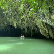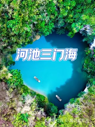 三门海位于广西河池市凤山县袍里乡坡心村,是世界喀斯特地貌典型的核心地带。因发育有三个天窗,由自然通道可乘船入内,使人体会到山中有海、海上有门的神秘感觉,“三门海”因此得名。天窗是喀斯特地貌的新形式。三门海的天窗则有7个之多,7个天窗平行排列呈北斗七星状,其中可通行的有三个。水、洞、天浑然一体,蔚为奇观。是世界罕见的壮丽景象,被国内外专家称之为:世界之窗。三个天窗中,神奇的是第三个,这里冬暖夏凉,温度常年保持22度,入口处的岩石直贴水面,在阳光照射下宛如一块巨大的翡翠,运气好的话还能看到成群的野猴在此嬉戏。