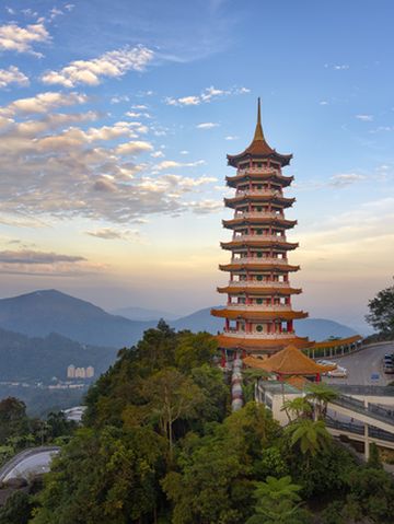 云顶高原度假区也叫云顶世界,海拔1860米,是东南亚的高原避暑地。这里有大型的游乐园、购物商场、电影院及云星剧场等设施,还有好几家环境不错的酒店,宛如一座山顶之城,非常适合一日游或全家度假休闲。从吉隆坡前往云顶高原度假区约1小时车程,然后再搭乘缆车到达山顶。随着缆车缓缓上升,马来西亚特有的奇花异草跃然出现在眼前,俯瞰脚下的热带雨林景观,十分壮美。坐到半山腰时常会看到云雾缭绕,如入仙境,到了山顶,各种建筑便在云里雾里若隐若现。【云顶游乐园】分为室外场及室内场,在室外场可以体验各种过山车、跳楼机、超人飞等精彩刺激的游乐项目,而室内场则有适合亲子游玩的迷你火车、航天舟以及小朋友专属的马戏团乘骑、热带雨林乐园等设施。此外,这里还有人工营造的浪漫冰雪世界——雪花堡、电玩中心——游戏机乐园等,一定会让你大呼过瘾。【云顶草莓农场】,可以摘草莓,品尝各种草莓味的饮料与食物,还能顺便买点草莓味的咖啡或红茶送给亲朋好友;或者去清水岩庙逛一逛,据说对祈求好工作比较灵验。【云顶第一城】,喜欢休闲的游客,可以去云顶第一城看看,琳琅满目的商店与美食餐厅云集,保证让你流连忘返。