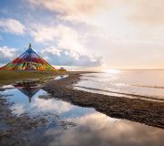 青海湖藏语名为“措温布”(意为“青色的海”)。位于青藏高原东北部、青海省境内,由祁连山脉的大通山、日月山与青海南山之间的断层陷落形成,是中国较大的内陆湖泊,也是青海省名称的由来。湖泊地域面积辽阔,环湖一圈约360公里,湖水浩瀚无边又蔚蓝空灵。湖的周围被群山环抱,而贴近湖畔则是苍茫的草原,青海湖景区景色壮观优美,可供观赏的地带和景观很多,是游玩青海重要的景区。自然环境:青海湖具有高原大陆性气候,光照充足,日照强烈;冬寒夏凉,暖季短暂,冷季漫长,春季多大风和沙暴;雨量偏少,雨热同季,干湿季分明。这样的气候决定了青海湖四季都有不同的美景。湖水的颜色会随着天气和光线变化,有时候一天就会出现多种色彩,美不胜收。青海湖在不同的季节里,景色也有不同,适宜的游玩时间是4-8月。其中以7-8月尤为优美,湖边有大片的油菜花开放,黄色的花田和一望无际的蓝色湖水相互配衬,非常漂亮。