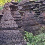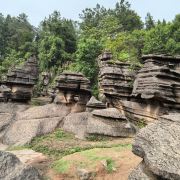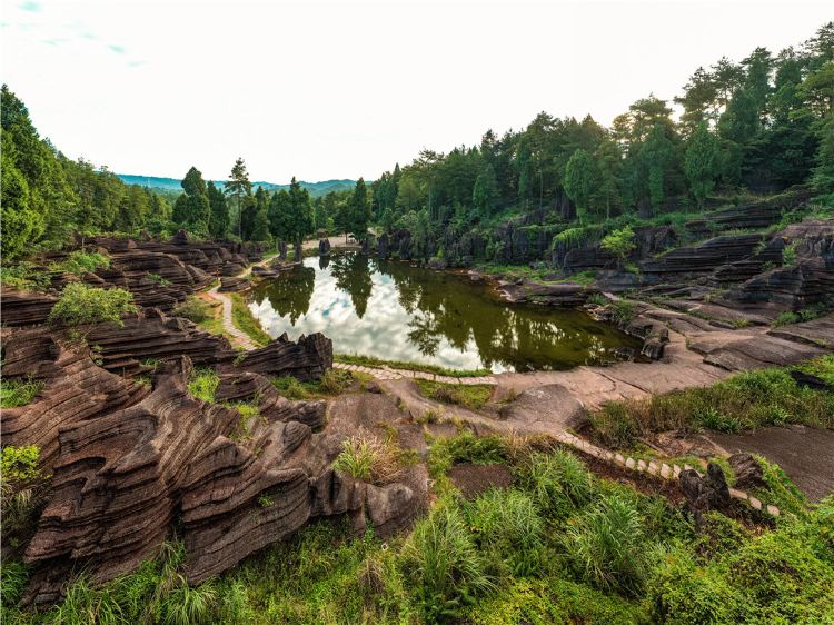 红石林国家地质公园 是一片非常有特色的喀斯特地貌,位于湘西自治州古丈县境内。红石林曾经是奥陶纪的海底,后来在海水、雨水的侵蚀下形成了独特的喀斯特地貌,而含铁元素形成的红色又有丹霞地貌的感觉。
