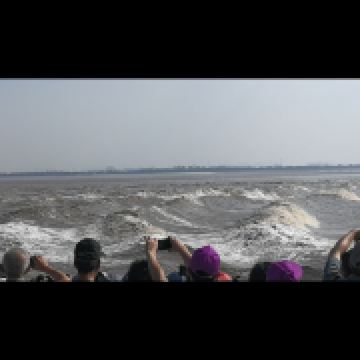 海宁盐官旅游度假区位于海宁盐官镇钱塘江畔,景区大致可分为盐官古镇和观潮胜地公园两部分,来到盐官的游客大多是冲着钱塘潮而来,潮水一般是下午,因此上午等潮水的时候正好在古镇逛逛。若只是在古镇逛逛,不进宅院便不用购票,若要去观潮胜地公园看潮水,可单买公园门票,也可直接购买景区联票。从游客服务中心进入景区,从春熙门往里走,联票中的收费景点大多集中在这里,步行距离很近。除了这些景点,值得一看的还有春熙路上的海神庙,关于海神庙的传说很多,让人印象深刻的要数梁柱上的彩绘,门口的石狮子也是古物,金庸书院也在它附近,“飞雪连天射白鹿,笑书神侠倚碧鸳”一首诗句,完整地记录了金庸先生的15部作品,书院也是金庸先生亲自参加奠基建设,建筑和布展体现了侠士的情怀。甬道壁画品武侠,书剑堂上话江湖,藏书楼里读金庸,望云亭上看风云。另一个收费景点王国维故居离其它景点略远,是学术界的知识探索之地。故居是王国维九岁时,其父亲王乃誉所建,当时名为“娱庐”,“国学大师”王国维在此度过了青少年时代的十二个春秋,后仍每年回来小住,王国维称其为“西城小屋”。里面陈列了一些王国维的生平资料,位置不太好找。另外,还有不能错过的就是孔庙学宫,它占地12800多平方米。可分为前导、左学、右庙等三部分。前导部分包括照壁、泮池、魁星阁、节孝祠等;左学部分包括儒学门、仪门、明伦堂、敬一亭和尊经阁等,右庙部分包括棂星门、大成门、大成殿和崇圣祠等。这里是儒家学术和古代教育的重要展示地,同时也结合了海宁地方文化的展示。在人民路口左转,走到尽头便是观潮胜地公园,公园里有好几处观潮点,还有占鳌塔、观潮台之类的古迹和一些展览。钱塘江观潮的习俗至今已有两千多年历史,如今大缺口、盐官和老盐仓三个观潮点尤为著名。观潮胜地公园是看“一线潮”的好去处,平常每月农历初一、十五左右,潮头会在这里呈一道白色水线,以惊人的速度奔向堤岸。随着白线的逐渐升高,潮头好像一排锐不可当的白墙,气势磅礴非常好看。尤其是在农历八月十八观潮节时,来此观潮的人潮一点也不输给江潮,此时公园门票和周边的住宿不仅价格疯涨,而且供不应求。每天潮汛的具体时间不太一样,建议行前咨询景区,或者直接问问景区周边的小商贩。景区内的乾隆酒楼、元龙食府可以用餐。