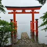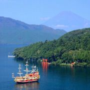 芦之湖形成于3000多年前的火山活动,位于箱根町西侧,驹形山南麓,是箱根的旅游中心。芦之湖背靠富士山,面朝富士山,四季景色各异,别具风味。环湖小径两旁绿树成荫,松杉葱郁,景色宜人。湖中盛产黑鲈和鳟鱼,是许多日本人泛舟垂钓的胜地。湖的北岸坐落着两个静谧美丽的城镇:久尻和桃园台。游客可以乘船游览湖光山色,尽情欣赏这里的秀丽风光。
