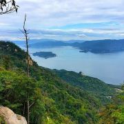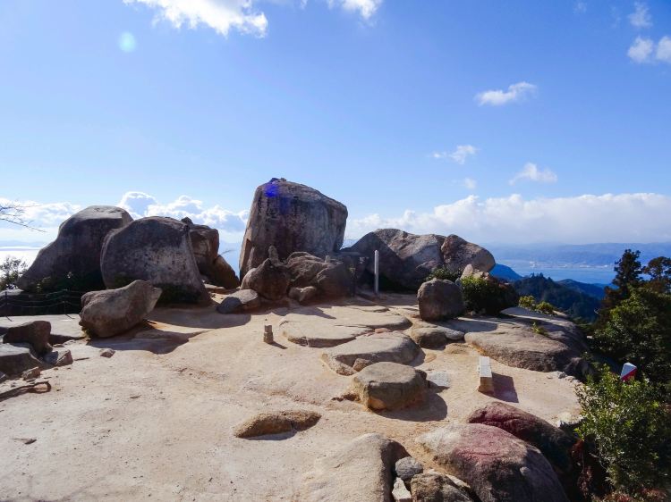 弥山是宫岛的主峰,海拔535米。山中的原始林被指定为天然纪念物,是以针叶树为主同时混杂着一些南方植物的森林。这里也可以观察到在自然生长状态下的山车类原始植物。乘坐空中缆车登山,从半空眺望宫岛壮丽的景色十分美妙。空中缆车的终点旁边设有狮子岩展望台,从这里可以尽情欣赏风光明媚的濑户内海。继续步行至山顶,360度的展望视角更加迷人,晴天时还能远眺四国的山峰。