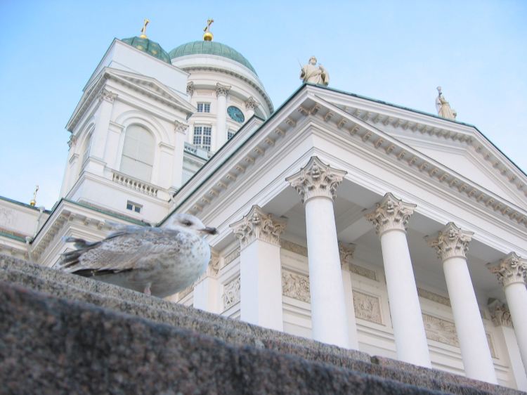 坐落于赫尔辛基参议院广场前的赫尔辛基主教座堂是赫尔辛基较出名的建筑,绿色的拱顶十分醒目,无论在市区的哪个角落都能看到这座器宇非凡的白色绿顶建筑,因此也被称为“白教堂”。