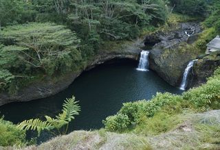 彩虹瀑布位于大岛希洛市西部,因瀑布的水雾经阳光折射后形成美丽的彩虹而出名。彩虹瀑布高约24.4米,在四周层层叠叠、青翠欲滴的热带植物的掩映下,显得它非常的与众不同。