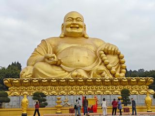锦屏山风景区位于弥勒市城北10余公里处,山峦灵气氤氲,树木蓊郁苍翠,远远望去,就像一座安然端坐的大佛。弥勒自古被誉为南滇福地,与未来佛“弥勒”同名。锦屏山风景区建有千年古刹弥勒寺,寺中主佛为弥勒,所以有了市名、寺名、佛名,同名之大奇。弥勒寺建于明天启年间,清乾隆年间重修,1999年扩建落成,拥有弥勒大佛、大运院、大雄宝殿、天王殿、大智殿五院,集弥勒布袋相、弥勒强巴相、弥勒仙光相、弥勒天冠相、弥勒思维相之绝致。