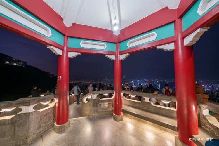 在太平山顶凌霄阁一侧,是观赏维多利亚港两岸及高楼大厦的尚佳位置之一,尤其夜间可遥望维港璀璨灯光。抵达山顶后,沿芬梨径便可到达狮子亭。