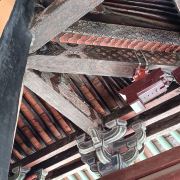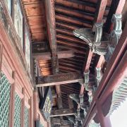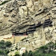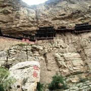 悬空寺位于恒山金龙峡翠屏峰的悬崖峭壁间,始建于北魏,距今已有1500多年历史,是国内现存较早、保存较好的高空木构摩崖建筑。来到恒山脚下,远远地就可以看到悬在半山腰的寺院,可谓是万丈深渊上的建筑。整个寺院悬在陡峭的崖壁上,利用峭壁的凹凸部分巧妙依势而建,显得格外错落有致。诗人李白当年游览过后,挥笔写下“壮观”二字,写完仍觉得不够体现自己激动的心情,又在“壮”上多加了一点,这两个字至今还刻在寺院脚下的岩石上。