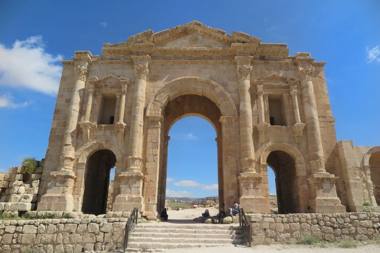 公元129年,为了迎接罗马皇帝哈德里安的来访,杰拉什人专门在城市南部兴建了一座雄伟的建筑,并举行了大规模的庆祝活动。尽管岁月已经让这座雄伟的建筑满目沧桑,但其英姿不倒,雄风犹存。每根石柱上雕刻着各种花纹,工艺精湛,体现了当时约旦人的建筑艺术。