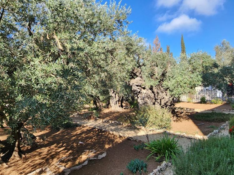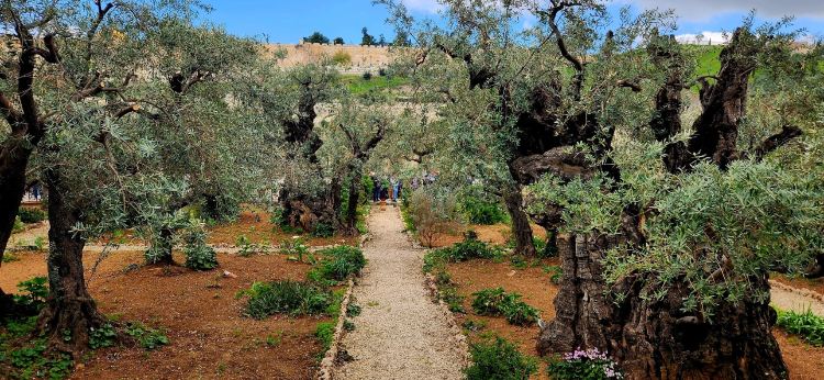 橄榄山下的“客西马尼园”绿荫环抱,“客西马尼”希伯来语意为“压榨橄榄”。这里种的树都是与耶稣同一时代的,耶稣被捕后一刻,曾到这里来祈祷。