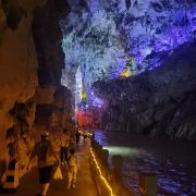 建水燕子洞位于建水县东部,包括自然林地、旱洞和水洞。景区主要是观赏溶洞的自然奇观、形态各异的钟乳石和每年5-7月份的燕子出、归巢。若是要观赏壮丽的自然景观,这是一个很好的地方。景点前半部分是800米的水洞,洞内景色雄伟,钟乳石千姿百态,是风景区的精华所在,游览时需要坐船进入。建水燕子洞,顾名思义,出名的是燕子。每年5-7月份上百万只雨燕来到此地筑巢,届时,早上9点前和下午5点后可以看到燕群出巢和回巢,这时才算是真正领略到景点的精华。