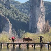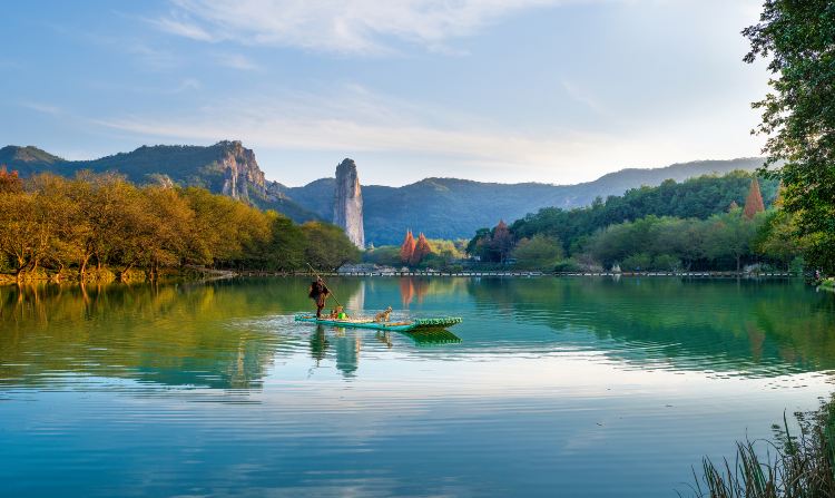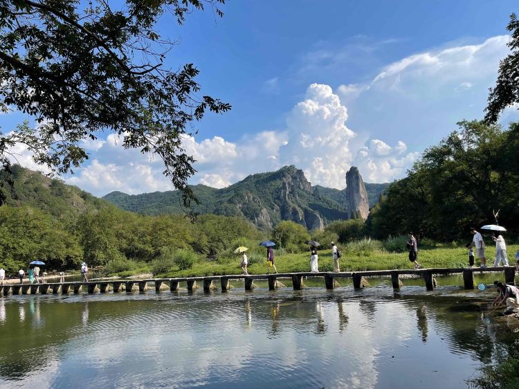 缙云仙都景区位于浙江省丽水地区缙云县境内,因为风光异常秀丽,众多影视剧先后在此拍摄外景,如《天龙八部》(张纪中版)、《笑傲江湖》(于正版)、《古剑奇谭》等,在游览途中,你可以寻找一下剧中场景。另外,你还可以在步虚山、朱潭山上俯瞰一柱擎天的鼎湖峰,和它映在好溪中优雅的倒影。