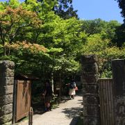 明月院坐落于狭窄的谷地,院内道路狭窄,走在小道上仿佛陷入了红叶的包围。这裡的必访景点是正殿。从圆窗望向窗外的庭园,犹如欣赏一幅美丽的画作。明月院距今已经有700年的建寺历史了,寺内的日式人造山水以及茂密的竹林、盛开的鲜花陪衬着古老的建筑,到处幽雅宁静,是摆脱都市喧嚣,享受安静的好地方。