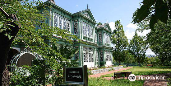 旧猎人住宅位于神户市的王子动物园内,建于明治22年(1889年),是明治时代的西洋建筑之一,也是现存的较大的异人馆。据说,该馆是根据一个德国人的要求,由Alexander Nelson Hansel设计而成。后由英国实业家Edward Hazlett Hunter买去重新修建,也因此称之为旧猎人住宅。这里在1966年被日本指定为国家重要文化财产,并成为1984年日本发行的邮政纪念邮票“近代西洋式建筑系列”的图案。住宅面朝南方,正面有两层,一层有接待室、书房和餐厅;二层有三个卧室以及一间客厅。西北角有一座三层的小亭,小亭的一楼有玄关的设计延伸至走廊。