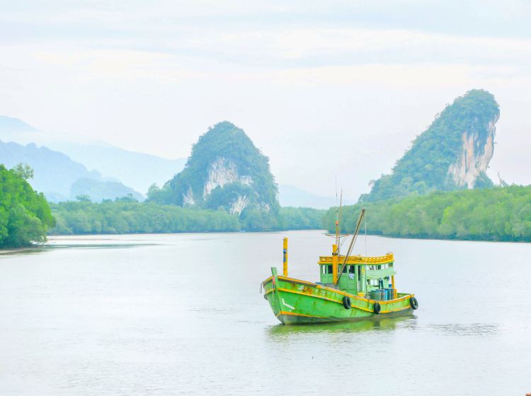 甲米的海景以随处可见的石灰石山而有名。这里是熔岩区,山冒出海面,形成一座座形状各异的小岛,千姿百态,别有趣致。有名字的不多,大多是无名的;热闹的也不多,大多是冷清的,就这么随意地,好像被一只“看不见的手”撒落在碧绿海面,是甲米抢眼的景致。