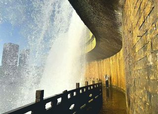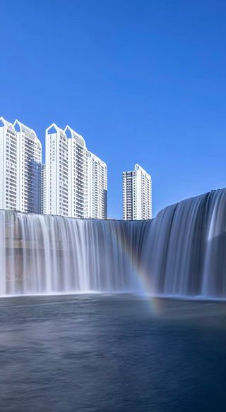 昆明瀑布公园位于牛栏江—滇池补水盘龙江入口段。公园的瀑布景观区充分利用牛栏江引水入滇工程而形成的人工瀑布及湖泊,其利用约12.5米的地势高差,建设成宽幅约400米的人工瀑布。该人工瀑布属国内幅宽较大、流量较大、规模较大的人工瀑布。