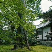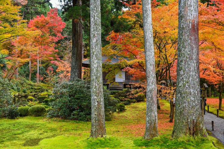 三千院,位于日本京都府京都市左京区大原,是一处天台宗寺院,建于1118年,和青莲院、妙法院并称天台宗之三大门迹寺院。作为天台宗三大门迹寺院之一,三千院以优雅美丽而闻名。华丽的殿宇、精心设计的庭院、四季美景,共同构筑了三千院这一造访大原时的必访景点。庭园中青苔密生,杉树蔽日。后院的自然林中约有3000棵紫阳花。每逢梅雨季节,鲜花盛开,景色醉人。