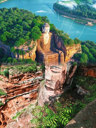 乐山大佛位于乐山市,岷江、青衣江和大渡河交汇处凌云山栖霞峰的岩壁上,又名凌云大佛,被联合国教科文组织批准为“世界文化与自然遗产”。造型为弥勒佛坐像,是唐代摩崖造像艺术的精品。