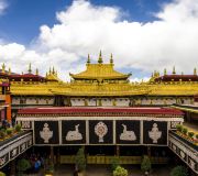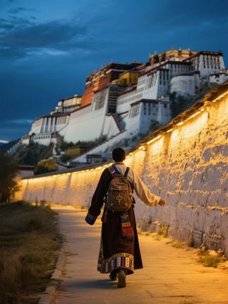 布达拉宫是西藏的象征,是所有朝拜者心中的神圣场所!“布达拉”是梵语,又译作“普陀”,原指观音菩萨之居所。来这里,不仅可以观赏宫内收藏的大量历史文物,欣赏藏民族精彩的建筑艺术,更可以在那种圣洁的氛围中进行一次灵魂的洗礼。据史书记载,该宫殿由来:公元七世纪三十年代,吐蕃第三十三代赞普松赞干布迁都拉萨,始建布达拉宫。此后,重大的宗教、政治仪式均在此举行,成为西藏政教合一的统治中心。布达拉宫-白宫和布达拉宫-红宫具有鲜明的藏式风格,气势雄伟,是西藏地区现存完整的宫堡式建筑群,被誉为世界十大土建筑之一。其主体建筑分布布达拉宫-白宫和布达拉宫-红宫两部分。布达拉宫-白宫因外墙为白色而得名,是喇嘛们生活起居和政治活动的地方。由于这里终日阳光普照,故称东、西日光殿。布达拉宫-红宫位于该宫殿的顶部中央位置,外墙为红色,由众多灵塔和各个佛殿组成。该宫殿收藏和保存着大量历史文物,有佛塔、塑像、壁画、唐卡、经文典籍,还有表明历史上西藏地方政府与中央政府关系的明清两代皇帝封赐的金册、玉册、金印以及金银器、玉器、瓷器、珐琅和工艺珍玩。其中引人注目的是五世以来的八座灵塔,无不金碧辉煌,上缀宝石琳琅满目,堪称是一座艺术的殿堂。