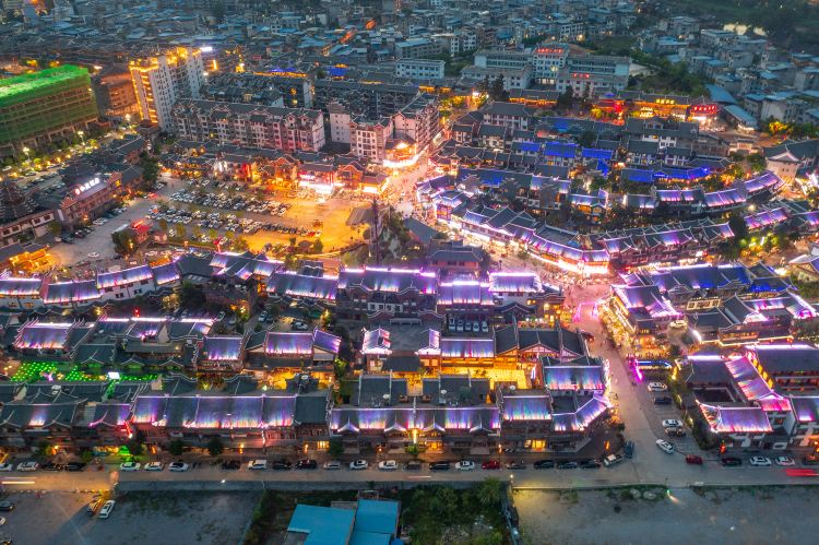 荔波古镇是一个集住宿、餐饮、酒吧、旅游商品店等经营户320户的综合性景区,其中有光影画布、非遗文创店、花筑·沐兰坊等核心门店176户。古镇成功打造出“壹贰山市”贵州特色夜间文化赶场市集、非遗网红街特色夜游等项目,形成夜娱、夜游、夜市、夜食、夜宿等五大消费场景。