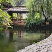束河古镇位于丽江古城西北部,是当年茶马古道上的重要驿站。古镇依山傍水,构造布局与大研古城相仿,屋舍错落有致,巷道间流水潺潺,环境优美。难得的是,由于旅游开发较晚,束河古镇比大研古镇要幽静古朴得多。沿街漫步从雕梁画栋的挂着“束河古镇”四个字的标识牌坊走进去,沿着两边都是店铺的石板路面可以一直走到古镇中心,像大研古镇一样,这里也叫四方街。当年的四方街,是马帮交易皮毛皮货的场所,现在的四方街,四面都是各种商铺,依稀可以感觉得到当年的繁华。九鼎龙潭沿着四方街边的溪流逆流而上,走过青龙桥,一湾清澈碧绿的潭水就在路边,这就是溪流的源头:九鼎龙潭。潭里生长着大量虹鳟鱼,因为玉龙雪山刺骨的融水,使得这里成为虹鳟鱼的天然养殖场。潭边建有龙泉寺,又称三圣宫,供奉的是皮匠祖师孙膑。爬上三圣宫后的小山坡,有块相对开阔的平地,这里是俯瞰古镇全景的好地方。茶马古道博物馆位于古镇内中和路上的茶马古道博物馆是值得一去的地方。博物馆原为木土司“束河别院”的一部分,主要以介绍茶马古道的历史为主,包括茶马交易、皮货交易和束河皮匠的起源等,可以对束河的历史有个简单的了解。此外壁画展厅不容错过,展出的为六铺大觉宫壁画,绘于明代,虽说晚于白沙壁画,但也精湛卓绝。餐饮住宿古镇面积不大,镇内餐馆、酒吧众多,逛古镇不需担心餐饮问题,走累了,找家小店,吃吃当地特色的鸡豆凉粉、米灌肠、虹鳟三吃等美食。古镇因不受“世界文化遗产”等诸多条件限制,很多客栈的建筑风格都独具特色。如果纠结于大研古镇的喧嚣,不妨来这里小住几日,感受束河古镇的清闲。老四方街附近是住宿相对集中的地方,区别于古镇入口处的喧嚣,这里相对清静。周边建议逛一圈下来,3-4小时足矣,如果还有精力和体力,可以从三圣宫后面出古镇,不远即可到达白沙古镇,这也是一个古朴幽静的小镇,闲逛之余别忘了观赏一下同样古旧且名气颇大的白沙壁画,时间不需太久,决不会耽误返回古镇住宿。
