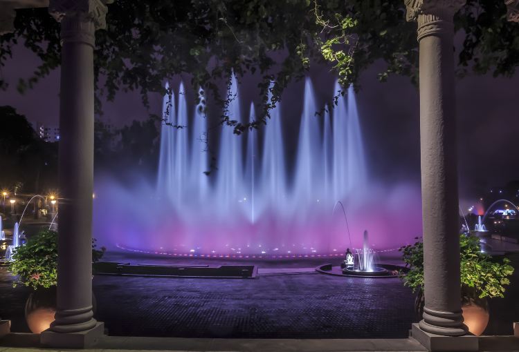 魔法水路公园是一个让人喜出望外的公园,公园里有一个超大型喷泉,喷出来的水借着灯光,喷泉像水金柱。 公园里还有一个喷泉形成了一个拱形的长隧道,人可以从下面钻过去,而且基本不会淋湿。