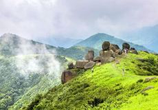 六峰山风景区位于钦州市灵山县境内,六峰山拨地横空,山石嶙峋,老树盘根,古刹幽深,东西北三面悬崖峭壁,自古只有南麓“灵岩初地”一条石径。有龙船岩、狮子岩、北帝庙、仙人井等溶洞景观、人文遗迹近百处,素有“粤西胜景”、“人寰胜地”的雅号。
