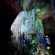 银子岩是典型的喀斯特地貌,整个溶洞贯穿十二座山峰,汇集了不同地质年代的钟乳石,宛如夜空的银河倾斜而下,闪烁像银子一般的光芒。坊间流传的“游了银子岩,一世不缺钱”的说法,也吸引了不少游客前去一探究竟。