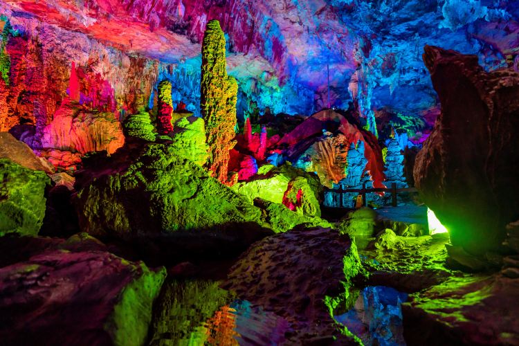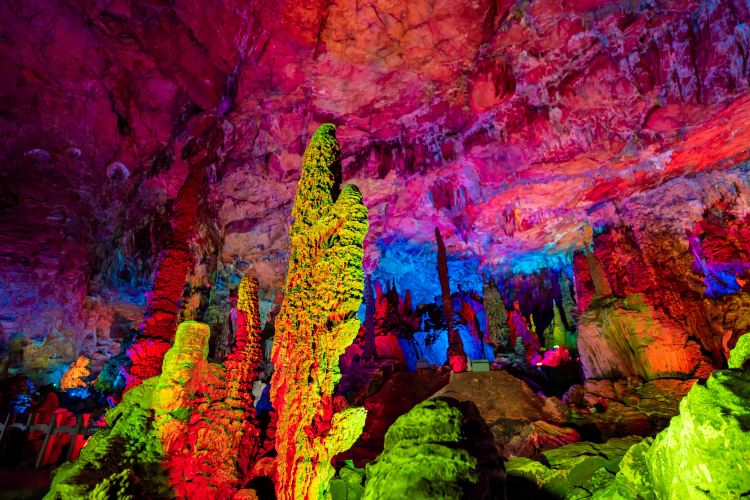 丰鱼岩是荔浦的老牌岩洞景点之一,距离县城15公里。它贯穿九座大山,是罕见的大溶洞。这些年来,同在荔浦的银子岩后来居上,抢去了丰鱼岩不少风头。整个景区可大致分为三部分,一进洞后步行、地下暗河的乘船游览部分、出地面的山边小火车,门票中含有导游费、游船和“空中列车”的小火车费用。整个洞内游程大约2-3小时,走起来不算太累,洞内也有洗手间等配套设施。