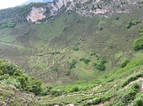这是一个巨型的塌陷的溶斗,有两百多米深,整体呈椭圆形,非常壮观。
