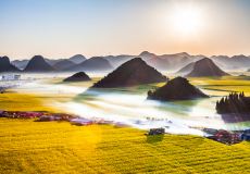 多依河位于罗平县城东南处,河水清澈碧绿,时有竹筏出没其中。景区可以欣赏到河道上分布着的罕见的大小钙化瀑布浅滩,还有布依族的甘蔗地、香蕉园、休闲坝子、自用竹排码头,也可以去布依族寨子做客。